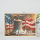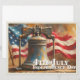 A striking artistic depiction of the Liberty Bell set against a flowing American flag. The textured style and patriotic colors capture the spirit of Independence Day, symbolizing freedom, history, and national pride.