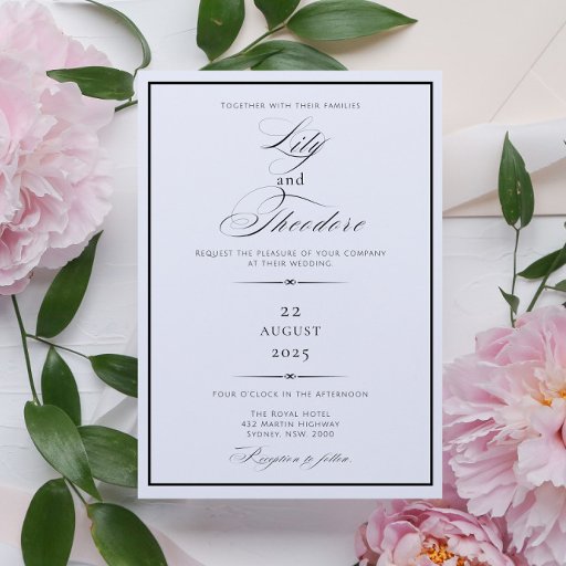 モノクロエレガントRSVPカードは、タイムレススタイルとtouchを組み合わモダンせる。パーソナルで洗練されたtouchを加えた美しいスクリプトフォントを搭載したこのデザインは、洗練されたテーマを補完するカップルに結婚最適である。ミニマルな白黒カラーパレットは、任意の配色とシームレスにペアを結婚設定できる。完全にカスタマイズ可能なこのRSVPカードを使用すると、ニーズに合わせて文字と詳細を調整できる。あなたは親密なお祝いや壮大なイベントを開催するかどうかに関係なく、このカードは特別な日にRSVPへのシックな方法をゲストに提供する。
