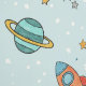 Launch into an intergalactic adventure with this vibrant wallpaper! This delightful pattern features cheerful, hand-drawn astronauts waving hello, bold red and orange rocket ships blasting off, friendly smiling moons, colorful striped planets, and twinkling stars. All these elements float across a soft, speckled blue background.. Perfect for inspiring dreams of exploration, this fun, gender-neutral design is ideal for a boy's bedroom, a play area, or a nursery, bringing a sense of wonder and excitement to any aspiring space explorer's room. Search ID1232 to see products with this fun pattern. Note: design adapted from generative content.