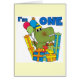 Little Dino 1st Birthday Tシャツ、ボディスーツ、カード、シール、バースデーボタン、トートバッグ、キープサックなどの恐竜の1st誕生日のアパレルとギフトは、風船、パーティー帽子、ギフトと緑の笑顔の恐竜をフィーチャー!