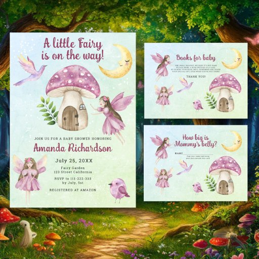 Little fairies. Watercolor mushroom shaped like a house. Birds.