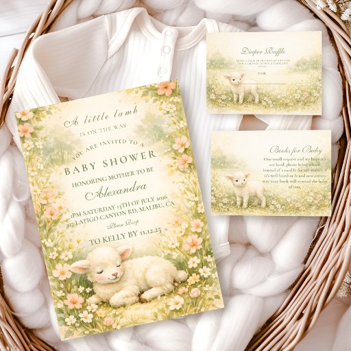 Little Lamb Wildflower Frame Baby Shower 招待状