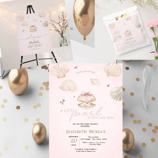 Our little pearl is on the way! Announce your upcoming baby shower with seashells, a pink bow, and pearls on polka dots. Perfect for an ocean or beach-themed baby shower, this sign will set a warm, inviting tone for your celebration!