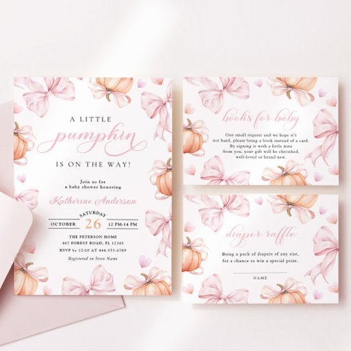 Little Pumpkin on the Way Pink Bow Baby Shower 招待状