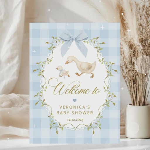 Little Silly Goose Baby Shower Blue Gingham アクリル招待状