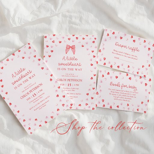 Little Sweetheart Girl Baby Shower Acrylic Invitation with cute pink and red watercolor hearts
