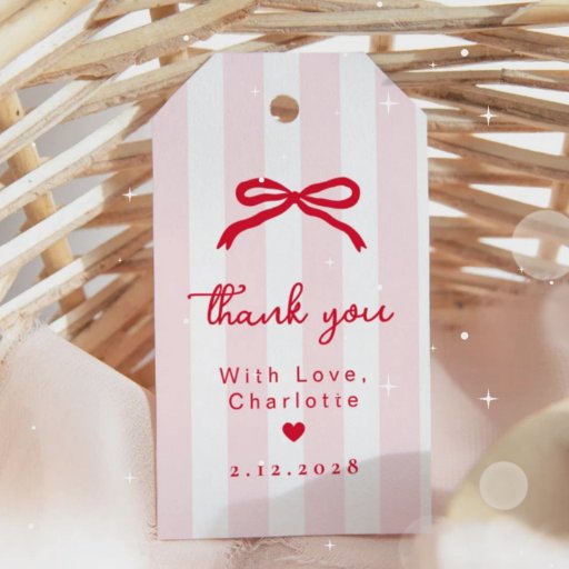 Little Sweetheart Pink Red Bow First Birthday 招待状