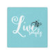 "Live Simple"タイポグラフィメタルプリント | Robin egg blueの"Live Simply"という言葉が美しい白い手の書フォントと黒い渦巻きデザイン。デザインシンプルバイリビング。