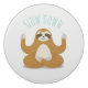 ハスおもしろいヨガのポーズと手書きフォントの「スローダウン」という言葉を保持する可愛いナマケモノのイラストレーション。