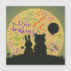 美しいクマとウサギのシルエットとして美しい言葉で夕暮れ時のグラフィック…