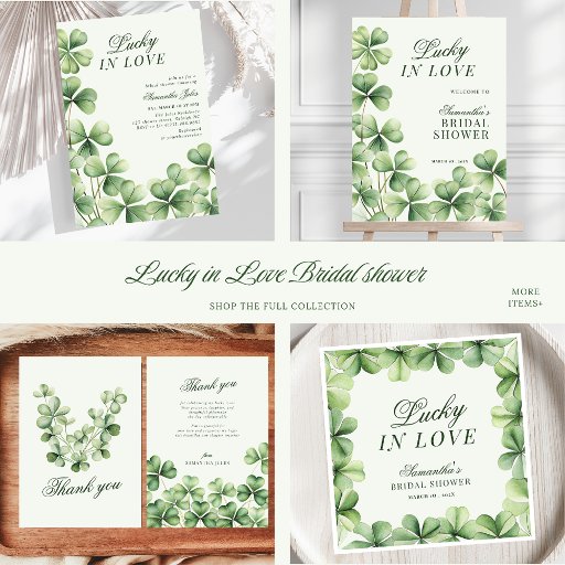 Lucky in Love Bridal Shower Green Shamrock サンキューカード