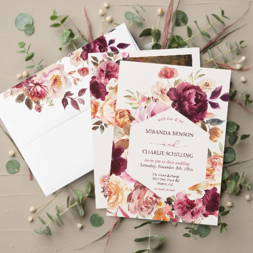 Complete your wedding stationery with coordinating save-the-dates, RSVP cards, thank you notes, programs, and more from the Lush Fall Florals collection. Create a cohesive look throughout your celebration that reflects the cozy elegance of fall.