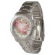 Luxury, Valentine Day ,Love Pink Heart and Flowers 腕時計