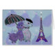 パリのパラソルを共有しているプードルの写実的なイラストレーション。