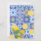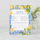 Perfect for lemon-themed baby showers, Italian summer parties, and Mediterranean-inspired events, this baby shower advice and predictions card invites guests to share sweet wishes, parenting tips, and fun baby predictions for the parents-to-be. The blue and white Mediterranean tiles paired with fresh citrus lemons create a stylish, modern yet timeless look that photographs beautifully.