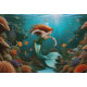 "Marielle" – 美しい踊りマーメイド。水中競技バレエ:この魅惑のイメージで素晴らし、流れる赤毛の人魚が海辺で優雅に踊り、緑と青の魚の尾が水の中できらめく踊る。魚とサンゴの水中の庭に囲まれ、彼女は穏やかな水中競技の曲のリズムに動いているように見える。繊細な色の色合いのシーン数々のは、この様式化されたプレラファエリートアートの穏やかで流れる美しいを捉えている。深いの青い海で人魚の踊りを見たことがあるか。