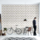 Brown and white modern cocktails martini stick and peel wallpaper. Great for behind a bar or in a saloon.