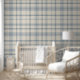 This muted farmhouse blue plaid wallpaper adds soft structure and cozy charm to a boy’s room or baby boy nursery. The subtle blue tones keep it soothing and neutral-leaning, making it a great choice for an accent wall behind a crib, bed, or reading corner.