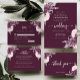 This elegant wedding RSVP enclosure card features mauve bouquets set off with silver faux foil greenery in two corners, on a deep mauve background. The customizable text combines silver gray serif and handwriting fonts. The reverse side features a matching mauve and silver floral design.