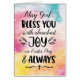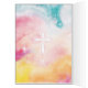 Wish someone a happy Easter with this unique calligraphy and hand-lettering style card, featuring the message, "May God Bless You with abundant Joy on Easter day & always." Includes heart, flower, and cross accents with colorful watercolor background.