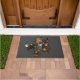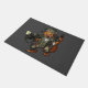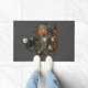 大きなドアマットは、歯に武装し、未来的な海洋装甲で平均戦う機械ジンジャーの猫を特徴とする。片手にライフル、もう一方のピストル、激しい魚の骨のエンブレムを特徴とする胸のプレートと。私のSFアクションお気に入りのフィルムとジンジャー猫への二重のトリビュート;ヌードルウィングスのアクション猫の週のデザイン2。