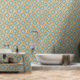 Perfect for kitchens, dining rooms, and entryways, this wallpaper design brings a handcrafted touch that balances rustic earth tones with cool ocean blues — creating a welcoming, artisanal look that never goes out of style.