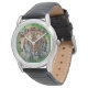 Men's classic black leather strap watch shown with a wildlife exotic tiger photo print.
