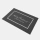灰色エレガントの背景に白い台本が描かれたメリー・クリスマス・ドアマット。お客様の名前または文字でカスタマイズ