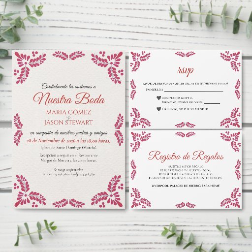 Mexican Talavera Red Floral Minimalist Wedding エンクロージャーカード