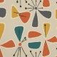 This mid-century modern wallpaper showcases a playful atomic-inspired floral pattern arranged in a seamless repeat. Abstract petal shapes and starburst details reflect classic 1950s design, offering a timeless retro look with a warm, inviting feel.