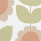This seamless retro floral pattern features soft pastel pink groovy flowers paired with muted green leaves, inspired by classic mid-century modern and 70s vintage design. The repeating layout creates a balanced, calming visual rhythm, making it ideal for large-scale applications without visible breaks.