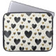 Make a bold statement with the "Midnight Luxe" laptop sleeve. This striking design features deep, ink-black watercolor hearts that provide a dramatic contrast against the soft, cream-textured background. To elevate the elegance, several hearts are fully rendered in glittering gold, complemented by a constellation of gold metallic dashes and shimmering confetti. Perfect for the professional who loves a touch of classic glamour, this sleeve blends a modern edge with a timeless, romantic motif.