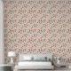 A sweet cute wallpaper that features a delightful and playful pattern of scattered mini strawberries on a sweet, light peach background. The strawberries are rendered in a vibrant red with green leaves, and they are interspersed with small, delicate white or light yellow strawberry flowers, adding to the charm. The overall impression is cheerful, fresh, and sweet, making it ideal for nursery’s decor and baby, toddler, child rooms.