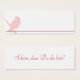 Diese kleinen Kärtchen eignen sich als Anhänger an Gastgeschenken oder als Tischkarten für die Hochzeitstafel. Auf der Vorderseite ist neben dem Vogel Platz für den Namen des Gastes, auf der Rückseite steht "Schön, dass Du da bist!". Diesen Text können Sie selbstverständlich auch nach Ihren Wünschen abändern. Der Vogel ist rosa, die Linie und die Schrift rot. Weitere Produkte aus der "Birdie" Hochzeitsserie finden Sie in meinem Zazzle Shop http://zazzle.de/PulsCreations.