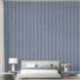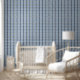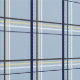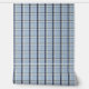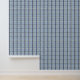 A plaid tartan pattern in calming muted neutral colors. Stripes in yellow, gray, white, and navy blue are arranged on a slate blue-gray background.
