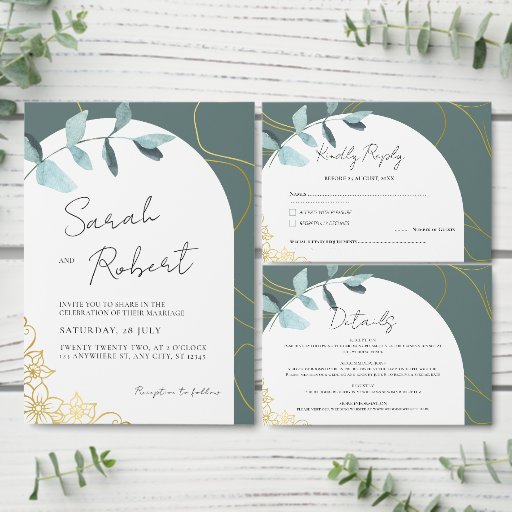 Minimal Chic Eucalyptus Greenery & Gold Accents 出欠カード
