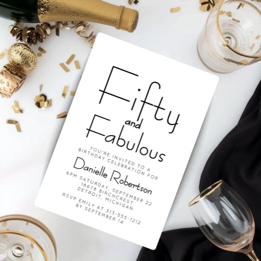 Minimal Fifty and Fabulous 50th Birthday Party 招待状