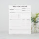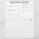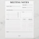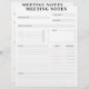 ホームオフィスやプロフェッショナルな職場のための最小限の白黒の会議ノートプランナー。プロジェクト名、日付、ディスカッションするトピック、責任ある人々とタスクのリストと締め切り、さらにノートのためのスペースを提供するスペース。