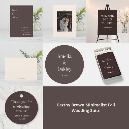 Minimalist Earthy Brown Elegant Wedding Custom ラウンドシール