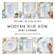 Minimalist Light Blue Bow Thank You Baby Shower. Easily personalise the text to your details. A coquette blue bow is tinted in the background with the words overlaid on top.