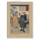 芸術家によるKuniyoshi Utagawa色の日本のな木版画。 イメージはMiyamoto Musashi有名な武士の剣士を見るために拡大鏡を遅らせている人です。 1847年と1850年の間に作成される。 、カード設計国会図書館からのアートワーク