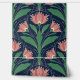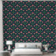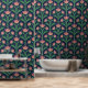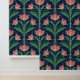 Modern Art Deco style wallpaper with symmetrical red tulip flowers on a navy blue background for a timeless classical look of your home