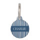 Modern Blue and White Stripes Personalized Name Pet ID tag.