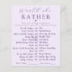 Add laughter and lively conversation to your celebration with this Modern Amethyst “Would She Rather” Bridal Shower Game. Designed in soft lavender with elegant amethyst typography and a delicate heart accent, this fully customisable stylish game card keeps guests engaged while guessing the bride’s favorite things. Perfect for modern, romantic showers, it coordinates beautifully with the Modern Amethyst collection and creates a fun, memorable moment for everyone.
