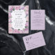 This boho-inspired RSVP card features original watercolours of roses in soft blush pink and romantic purple tones. The delicate floral artwork beautifully complements a purple and pink rose wedding suite while the modern script “RSVP” heading adds a stylish touch. Practical response options and guest count lines make it both functional and beautifully refined for a romantic garden-inspired celebration.