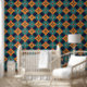 Perfect for accent walls, living rooms, creative studios, or eclectic interiors, this wallpaper brings a mix of modern edge and vintage flair. Its vivid colors and structured design make it a standout choice for those who want to add style and vibrancy to their home decor.