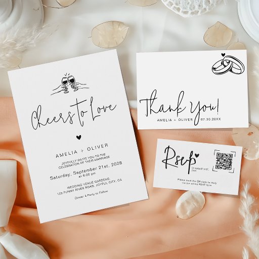 This modern script heart wedding RSVP card features a stylish handwritten font with a small heart accent for a romantic touch. The clean black and white design creates a timeless and elegant look. A clearly placed QR code allows guests to respond quickly through your online RSVP form. This minimalist card is perfect for contemporary weddings and coordinates beautifully with modern invitation suites. It can be customized with your RSVP deadline and event details.