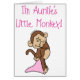 ピンク毛布を持つ愛らしく小さい茶色猿および"私を読むピンクの文字はですLittle Monkey伯母さんの!" 私達の伯母さんの女の子のTシャツ、ステッカー、カードで、もっと特色にされ!