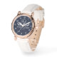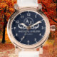 Create your own custom brand luxury watch. Timeless elegant watch dial design with fine indexes. Add your own custom monogram, custom name, designer name, initials, year of birth, logo, icon, photo image, etc. Sophisticated presence of modern minimalist style with elegant script typography template. Luxurious watch for him. Make it a cool new gift for boyfriend, boyfriend, dad, father, husband, brother, son, boyfriend, grandpa, grandpa, grandfather, stepdad, uncle, coworker, employee, company boss, business partner, colleague, best friend, teacher, coach or retiree. Unique monogrammed gift ideas for men's birthday, graduation, anniversary, retirement, vacation, wedding party, appreciation, employment, work, etc. Large diameter about 44mm. Classic vintage style with 22mm fashion black leather wrist strap. White or custom background color. Perfect for 20th, 30th, 40th, 50th, 60th, 70th, 80th, 90s celebrations. Affordable quartz watches under $100. Nice for casual daily wear and special occasions. Also available for other models with brown leather or steel bracelet.