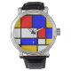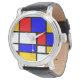 Un homme de style avec cette montre au design inspiré du peintre Piet Mondrian.
